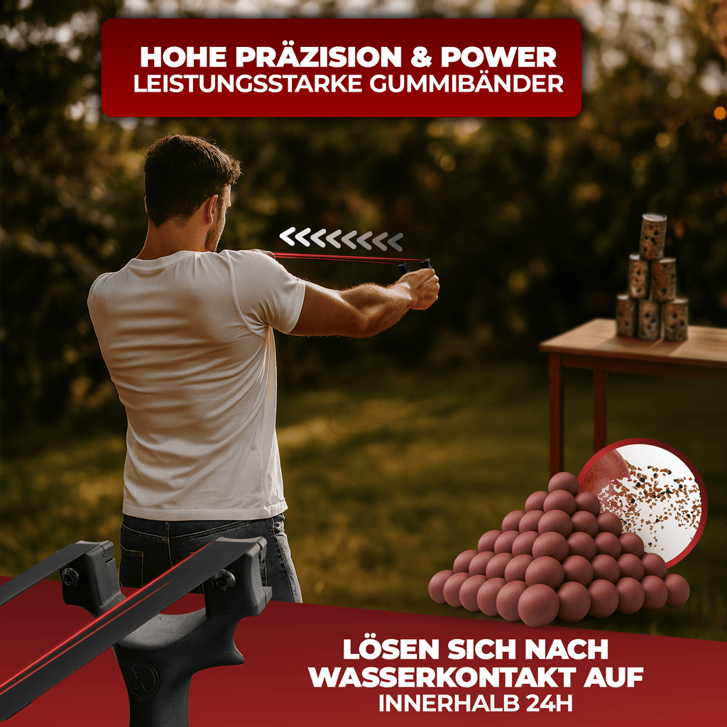 Wie Du wahrscheinlich weißt, sind die Gummibänder einer Zwille Verbrauchsgüter. Mit der Zeit nutzen sich die Gummibänder ab und können reißen, das ist ein völlig normaler Prozess eines jeden Gummibandes. Wir garantieren Dir, dass Du mit unseren Gummibändern mindestens 100 Schüsse tätigen wirst, bevor das Gummiband den Geist aufgibt. Sollte dennoch der Fall eintreten, dass das Gummiband vor den 100 Schüssen reißt, so werden wir Dir umgehend zwei neue gebundene Gummibänder zuschicken. Garantiert! Nimm dafür einfach mit uns Kontakt auf.